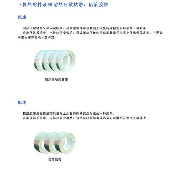 - 產品名稱:伴熱配件系列—耐熱壓敏粘帶、鋁箔膠帶